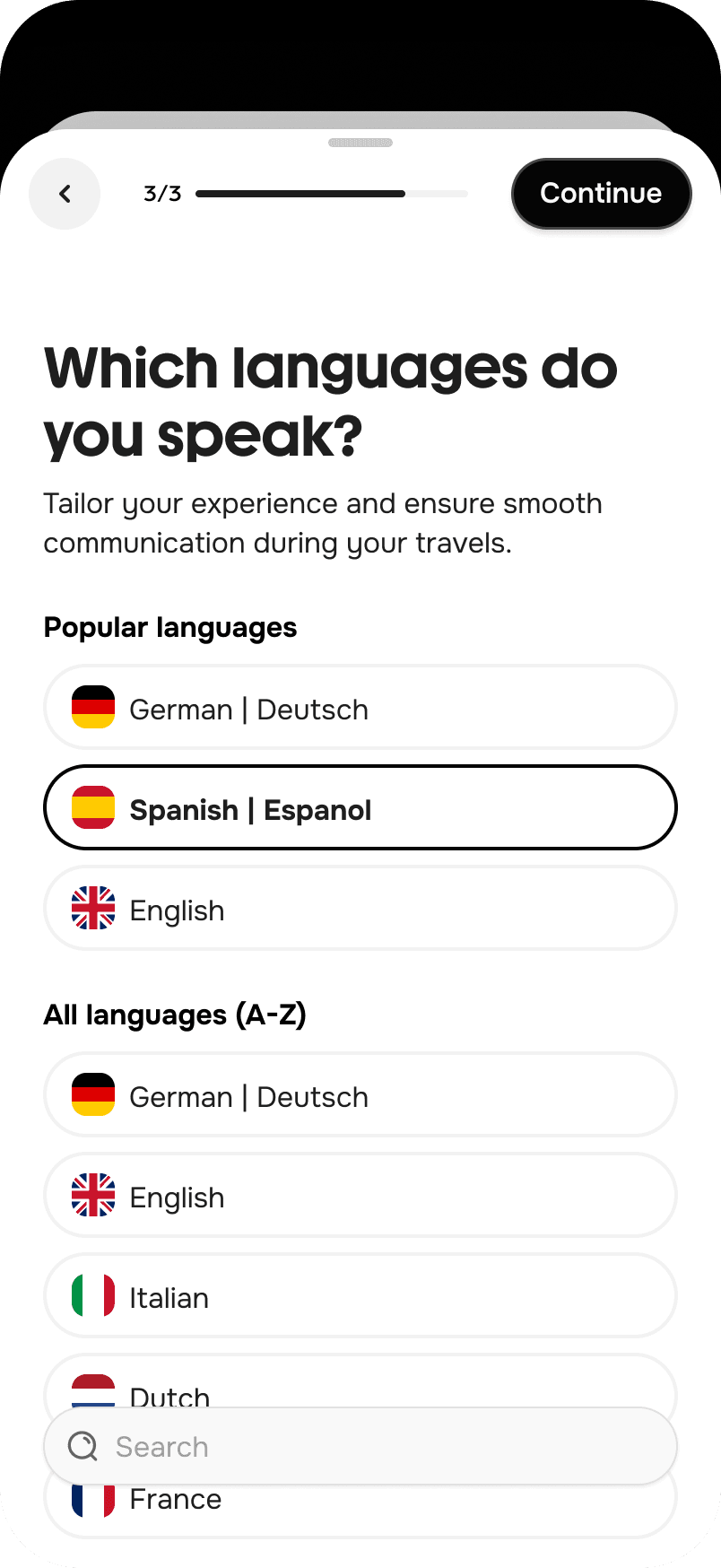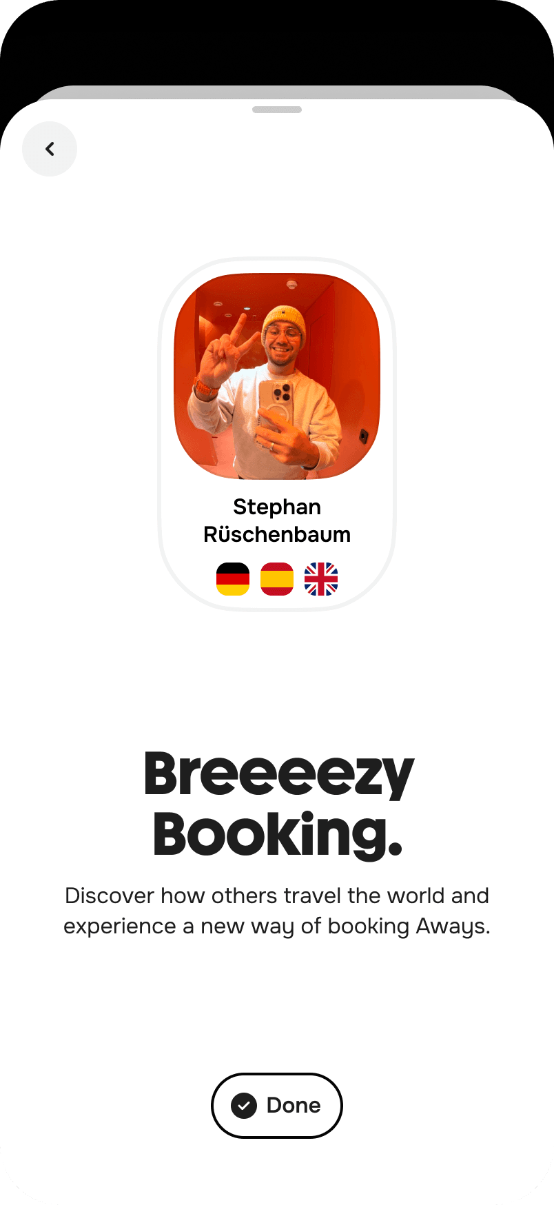This week we shipped a simple and short onboarding flow which allows you to tell us who you are, how you would like to be seen, and most importantly which languages you speak. Language defines your travel experience the most, that's why we believe it's a key ingredient for finding the best Stays or Things to do along your Away's journey.